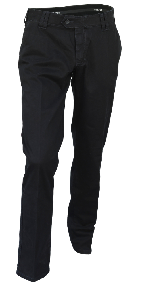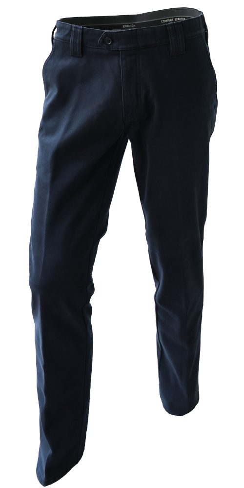 Denes miesten housut on valmistettu pehmeästä ja joustavasta puuvilla/ elastaani kankaasta. Housuissa on suorat lahkeet, joustovyötärö, etutaskut, kaksi takataskua ja klassinen istuvuus.