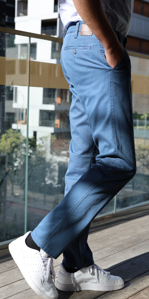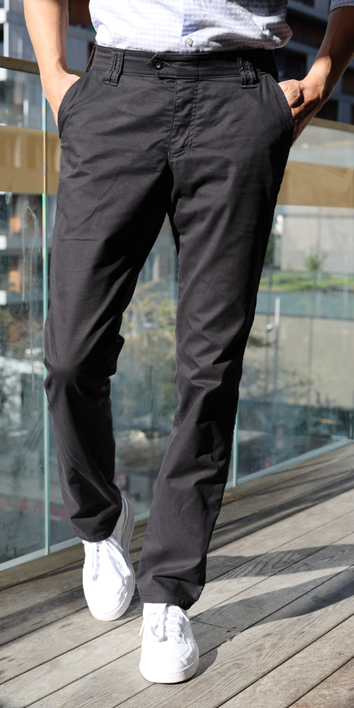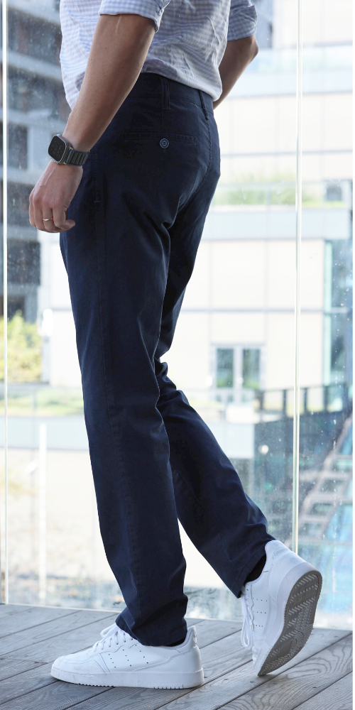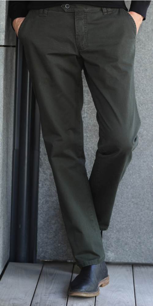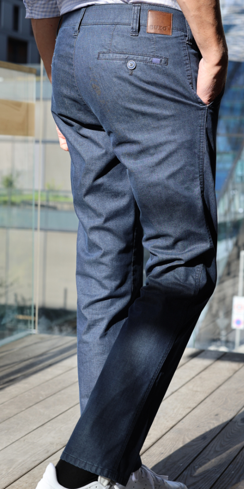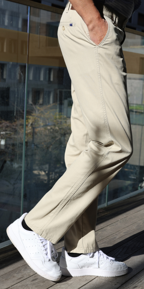 Denes 8027 chinohousut on valmistettu pehmeästä ja joustavasta puuvillasta. Housujen vyötärökorkeus on normaali ja lahkeen malli on suora. Kaksi takataskua ja etutaskut. Housuissa on joustovyötärö, joka mukautuu käyttäjän tarpeiden mukaan. Klassinen istuvuus.