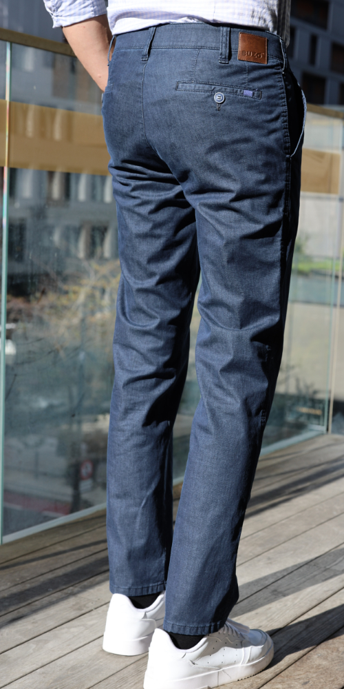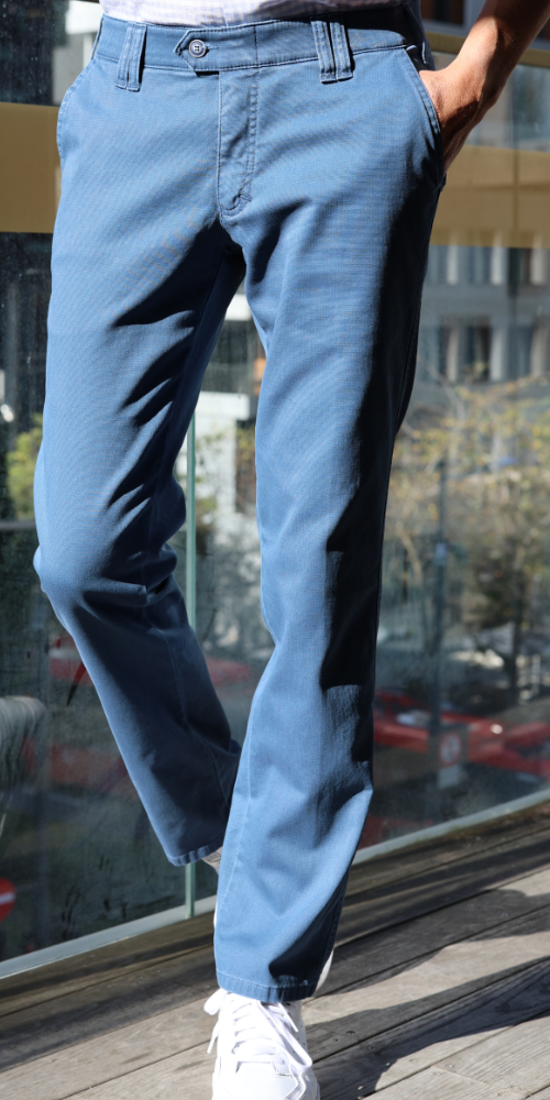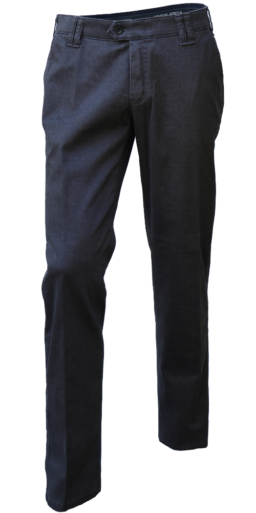 Denes 8026 microstructuuri puuvillahousut ovat joustavat, monikäyttöiset ja tyylikkään siistit. Housut on valmistettu pehmeästä ja joustavasta puuvilla/elastaani kankaasta, jossa on hillitty villamainen struktuuripinta. Housuissa on suorat lahkeet, joustovyötärö, etutaskut, kaksi takataskua ja klassinen istuvuus.
