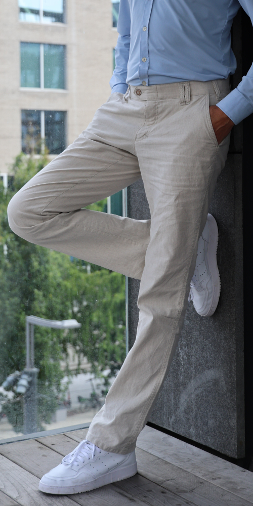 Denes miesten pellavalook kankaasta valmistetut housut ovat pellavahousun oloiset, kevyet ja monikäyttöiset. Housuissa on suorat lahkeet, joustovyötärö, etutaskut, kaksi takataskua ja klassinen istuvuus.